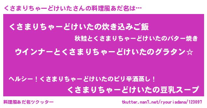 | 意味不明あだ名 | 『くさまりちゃーどけいたフォーエバー』 |