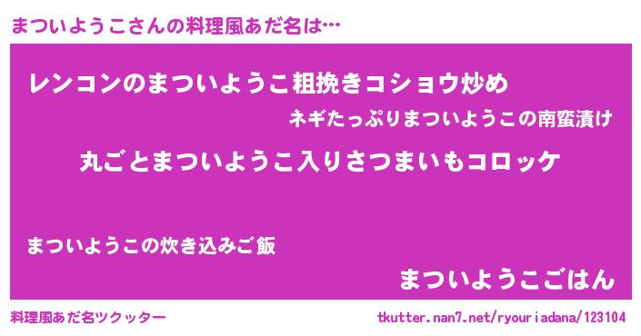| 女子向けラノベタイトル風あだ名 | 『乙女ゲームの破滅フラグしかない悪役まついようこに転生してしまった…』 |