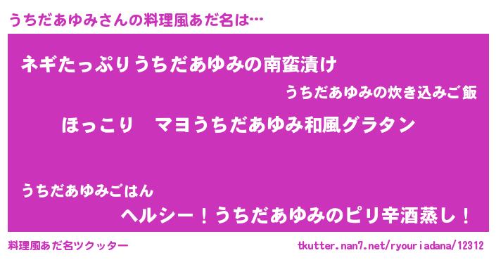 | 恥ずかしいあだ名 | 『プリティーうちだあゆみ』『うちっちょ』 |