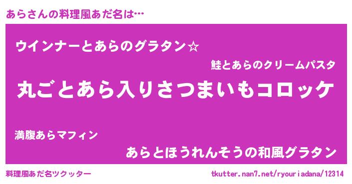 | ヘコむあだ名 | 『なまこ酢』『あら(笑)』『あらにー』 |