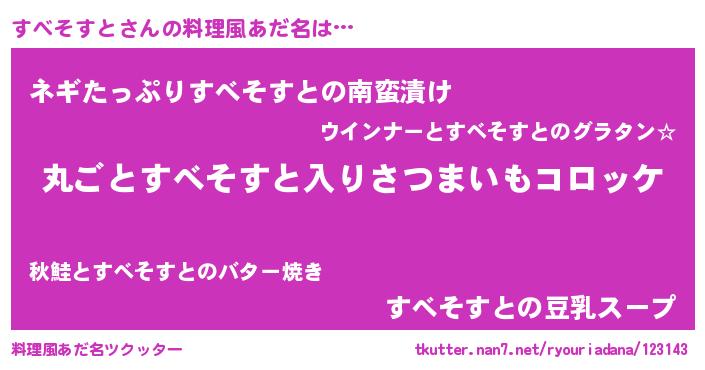 | 意味不明あだ名 | 『住所不定無職すべそすと(14歳)』 |