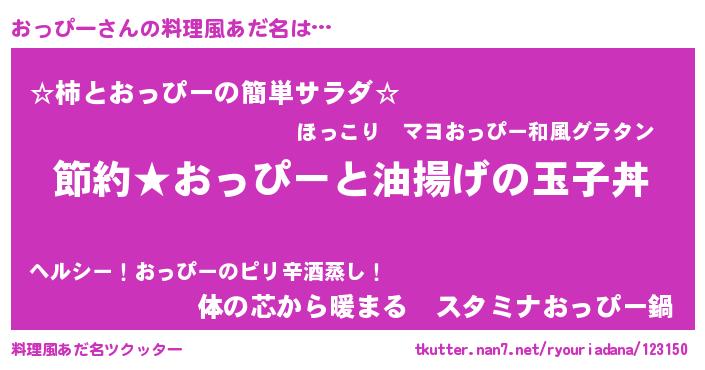 | 意味不明あだ名 | 『ペロリンおっぴー』『自称おっぴー』 |