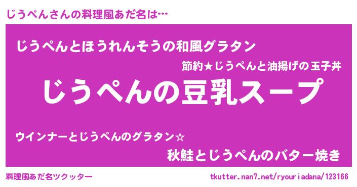 | 女子向けラノベタイトル風あだ名 | 『じうぺんは平凡を望む』 |