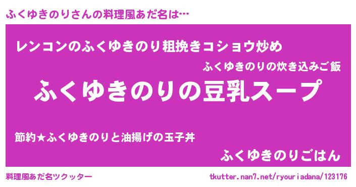 | ポケモン風あだ名 | 『ヒフクユキノリ』『フクセウス』 |