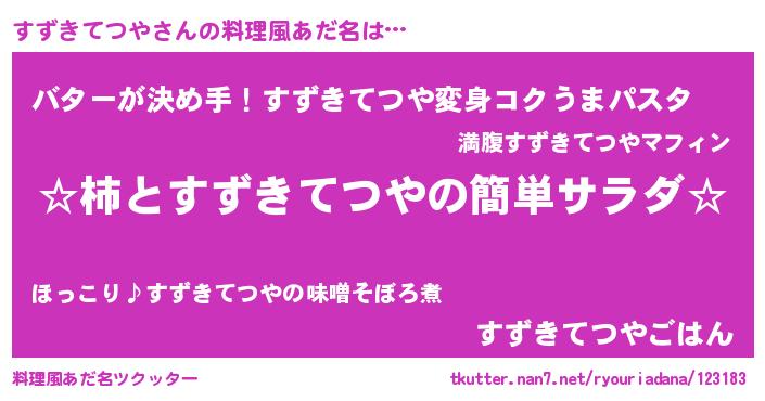 | ヘコむあだ名 | 『すずきてつや(笑)』『すずにゅー』 |