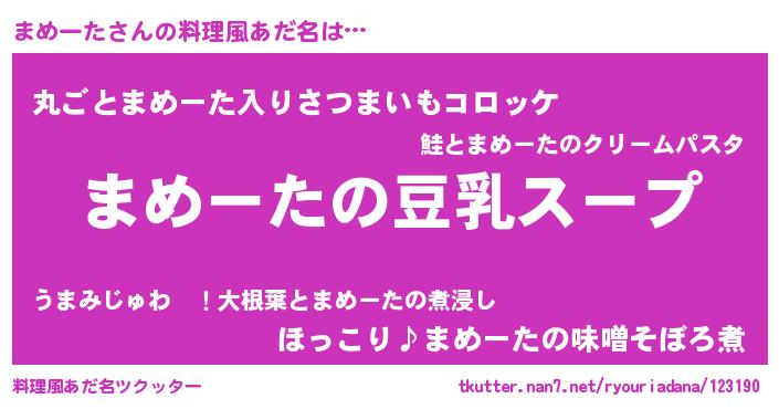 | 意味不明あだ名 | 『とにかく怪しいまめーた』 |