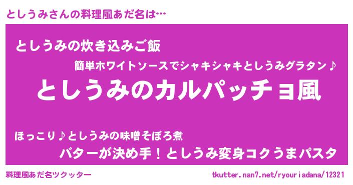 | 意味不明あだ名 | 『住所不定無職としうみ(47歳)』 |