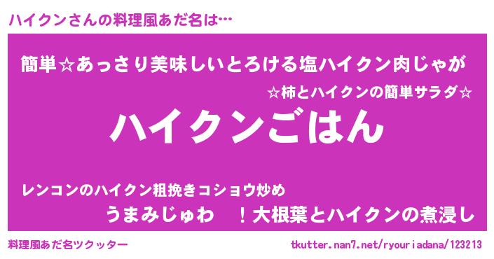 | ヘコむあだ名 | 『ハイクン(震え声)』『レバニラ』 |
