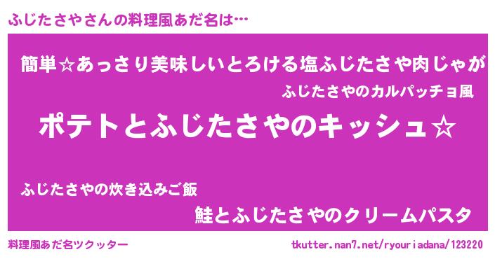 | ヘコむあだ名 | 『ふじを』『ふじたさや(小並感)』 |
