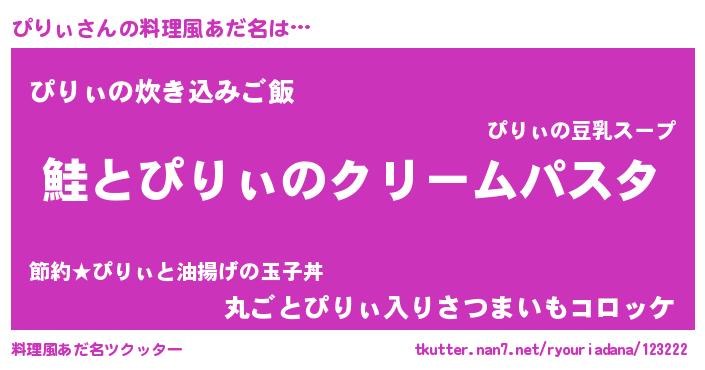 | ヒーロー風カッコイイあだ名 | 『慈愛の使者ぴりぃ』『仮面ピリダー』 |
