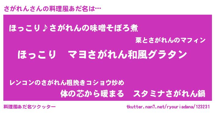 | 男性向けラノベタイトル風あだ名 | 『この素晴らしい世界にさがれんを!』 |