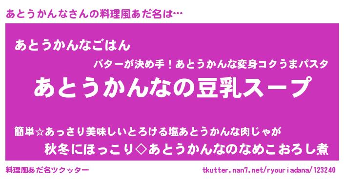 | ヘコむあだ名 | 『あとぷりん』『あとうかんな(笑)』 |