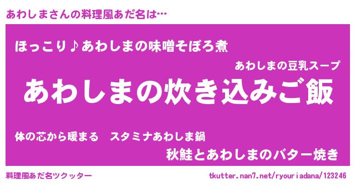 | 胡散臭い通販商品みたいなあだ名 | 『億万長者になれる水晶球…その名も「あわしま」』 |