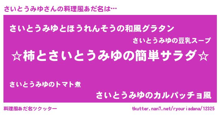 | 意味不明あだ名 | 『しいたけ科さいとうみゆ属』 |