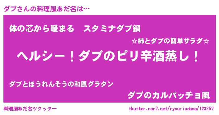 | 男性向けラノベタイトル風あだ名 | 『Re:ダブから始める異世界生活』 |