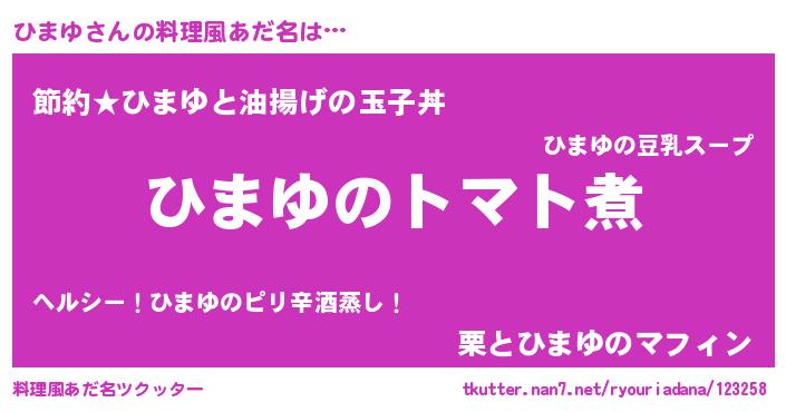 | 女子向けラノベタイトル風あだ名 | 『ひまゆ夫妻のなれそめ』『闇のひまゆ』 |