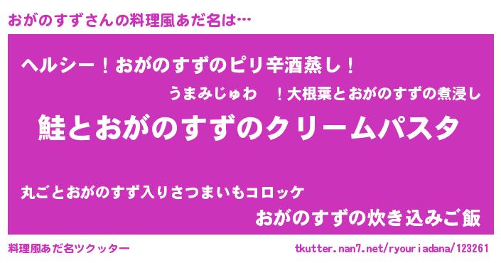 | ヒーロー風カッコイイあだ名 | 『慈愛の使者おがのすず』『仮面オガダー』 |