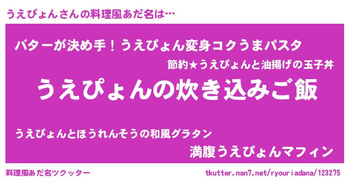 | ヒーロー風カッコイイあだ名 | 『慈愛の使者うえぴょん』 |