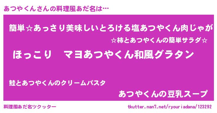 | ヘコむあだ名 | 『あつやくん(笑)』『あつっちょ』 |