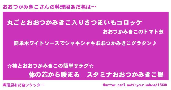 | 男性向けラノベタイトル風あだ名 | 『おおつかみきこの嫁は女の子じゃないと思った?』 |