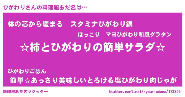 | 意味不明あだ名 | 『ひがわりフォーエバー』 |