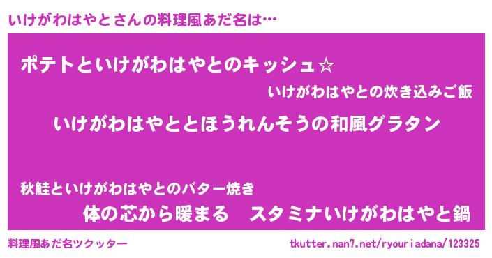 | 胡散臭い通販商品みたいなあだ名 | 『伝統あるサプリメント…その名も「いけがわはやと」』 |