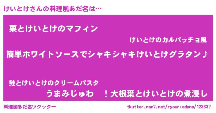| 男性向けラノベタイトル風あだ名 | 『けいとけの嫁は女の子じゃないと思った?』 |