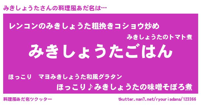 | 欧米人風あだ名 | 『トリンドルみきしょうた』 |