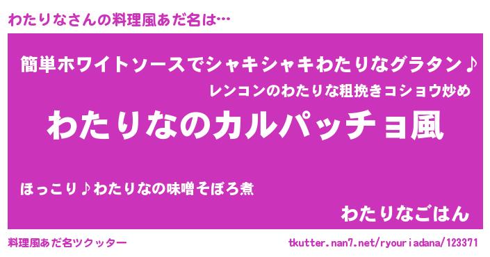 | 意味不明あだ名 | 『住所不定無職わたりな(56歳)』 |