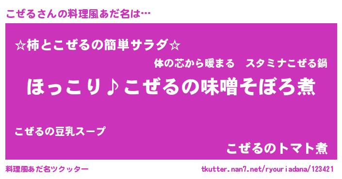 | 女子向けラノベタイトル風あだ名 | 『(仮)こぜるのやんごとなき事情』 |