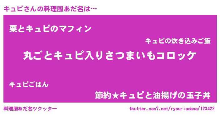 | 男性向けラノベタイトル風あだ名 | 『魔弾の王とキュピ』『キュピスレイヤー』 |