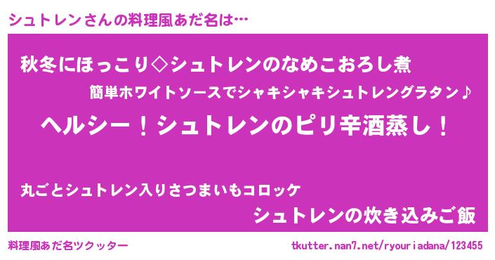 | ヒーロー風カッコイイあだ名 | 『最強戦士シュトレン』『銀牙騎士シュ』 |