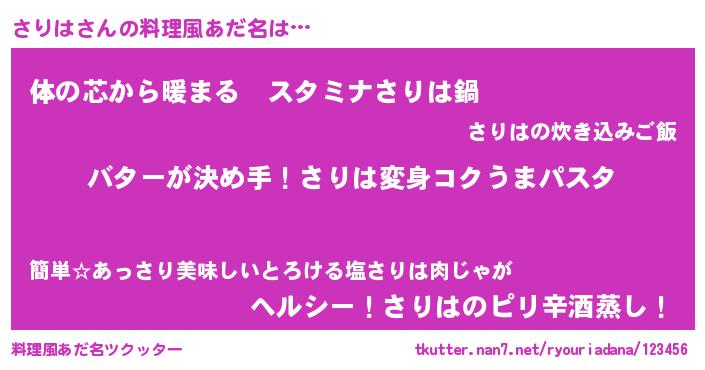 | ポケモン風あだ名 | 『サックウザ』『サリハダネ』 |