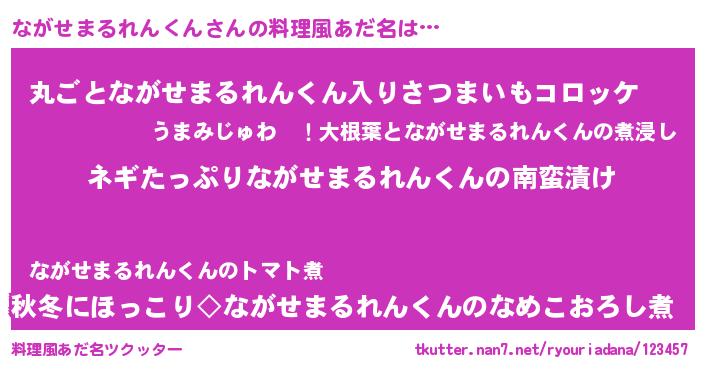 | 男性向けラノベタイトル風あだ名 | 『ナガセマルレンクンアートオンライン』 |