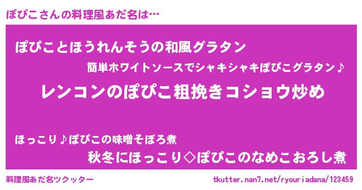 | 男性向けラノベタイトル風あだ名 | 『魔法科高校のぽぴこ』『ぽぴこの憂鬱』 |