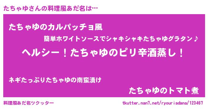 | 女子向けラノベタイトル風あだ名 | 『闇のたちゃゆ』『たちゃゆ様がみてる』 |