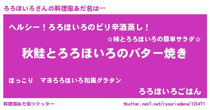 | ヘコむあだ名 | 『ろろほいろ(笑)』『ろろぷりん』 |