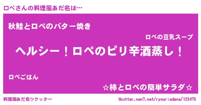 | 男性向けラノベタイトル風あだ名 | 『Re:ロペから始める異世界生活』 |