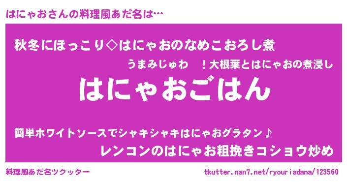 | 胡散臭い通販商品みたいなあだ名 | 『テレビで話題の高麗人参…その名も「はにゃお」』 |