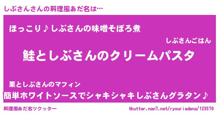 | 女子向けラノベタイトル風あだ名 | 『死神しぶさんの再婚』 |