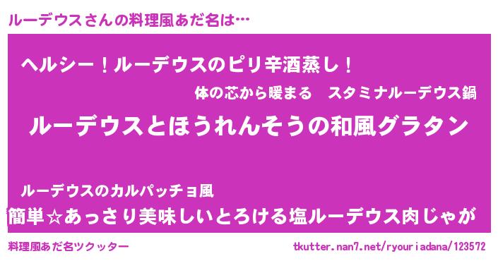 | 女子向けラノベタイトル風あだ名 | 『ルーデウスの玉の輿計画!』 |