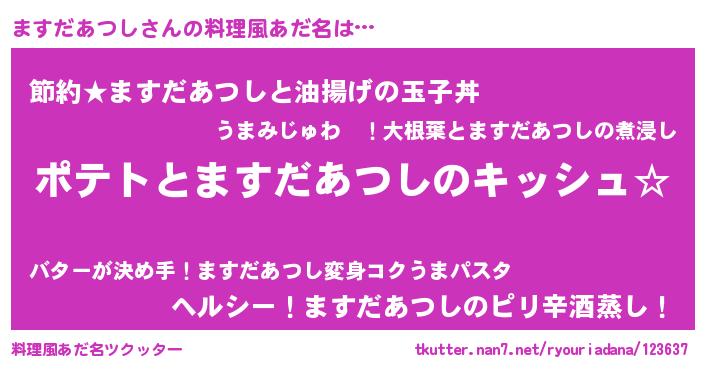 | 女子向けラノベタイトル風あだ名 | 『ますだあつしの卵を拾いまして』 |