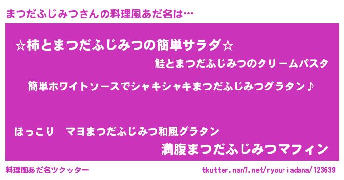 | 男性向けラノベタイトル風あだ名 | 『まつだふじみつの嫁は女の子じゃないと思った?』 |