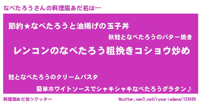 | 女子向けラノベタイトル風あだ名 | 『なべたろうなんてお断りですっ。』 |