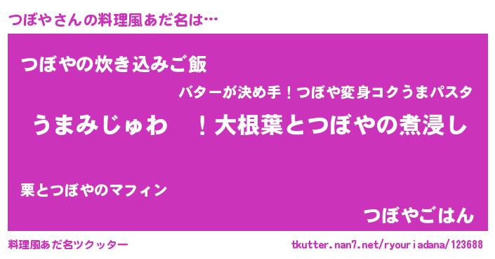 | ヒーロー風カッコイイあだ名 | 『ウルトラつぼやマン』『黄金騎士ツボ』 |