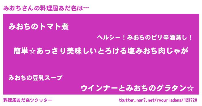 | ヘコむあだ名 | 『みおち(苦笑)』『牛乳』 |