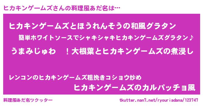 | 意味不明あだ名 | 『ヒカキンゲームズフォーエバー』 |