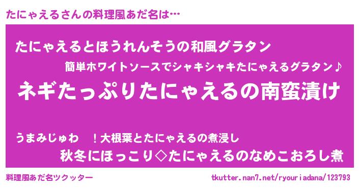 | 胡散臭い通販商品みたいなあだ名 | 『億万長者になれる霊験あらたかなお札…その名も「たにゃえる」』 |