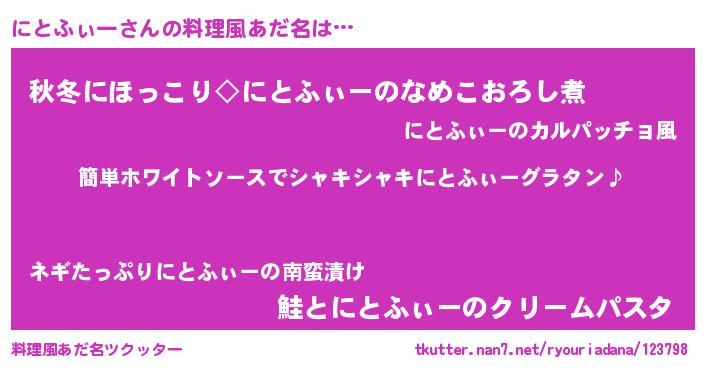 | 女子向けラノベタイトル風あだ名 | 『にとふぃー様がみてる』 |