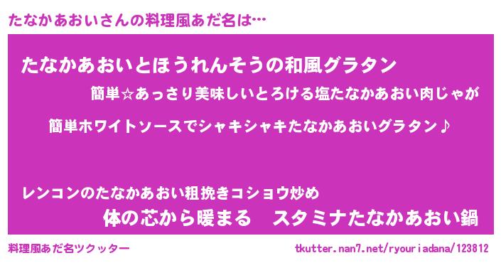 | 男性向けラノベタイトル風あだ名 | 『たなかあおいの嫁は女の子じゃないと思った?』 |